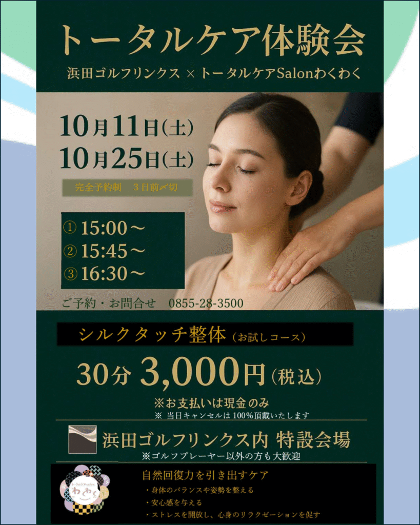 10月11日(土)、25日(土)トータルケア体験会のお知らせ