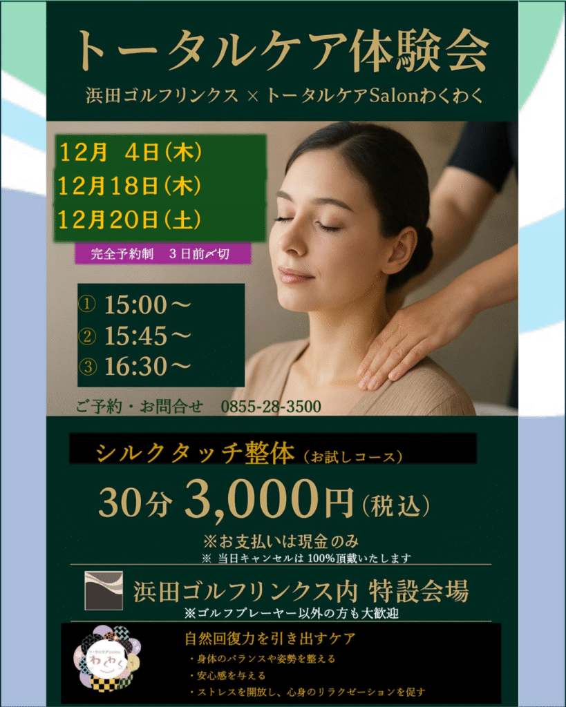 12月4日、12月18日、12月20日トータルケア体験会のお知らせ