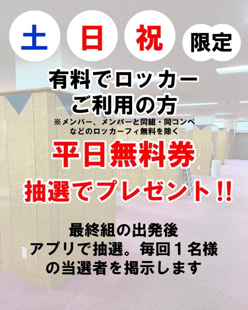 有料でロッカーご利用の方、抽選で平日無料券プレゼント